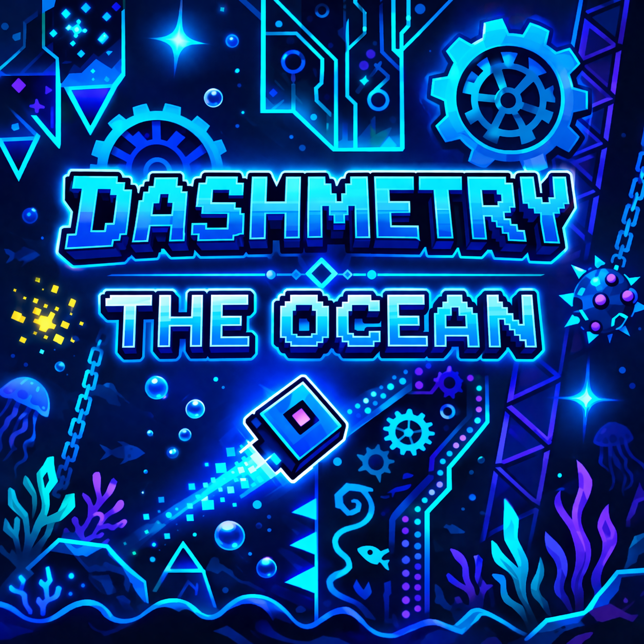 Dashmetry The Ocean is a skill rhythm platform game where the main objective focuses on guiding your icon through ocean-themed levels, avoiding obstacles, and reaching the final portal. The character moves forward automatically while traps and tight paths appear in sync with the music. Every action depends on precise timing and fast reactions. Dive in and prove you can survive the rhythm!