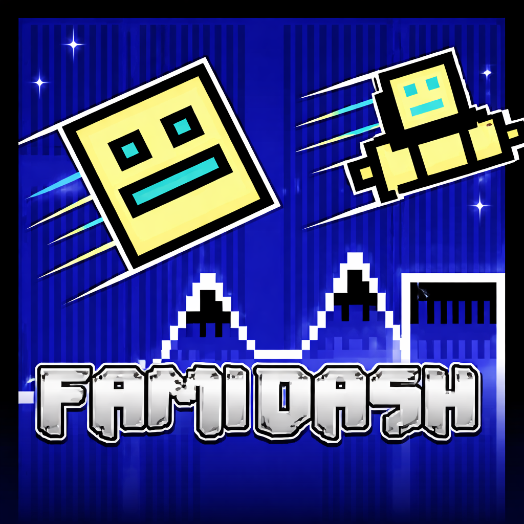 FamiDash is a rhythm platformer where every movement connects to the beat of energetic chiptune music. A small character travels forward through side-scrolling 8-bit stages filled with spikes and hazards. The objective centers on reaching the finish of each level without colliding with obstacles. Careful timing and quick reactions help guide the character through tight sections. Step into the retro world and see if your rhythm can conquer every challenge!
