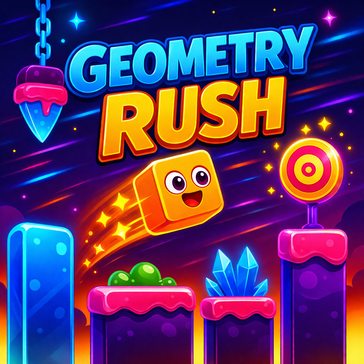 Geometry Rush is a side-scrolling platformer where players guide a cube through fast-moving obstacle courses. Victory depends on reaching the end while staying clear of traps in rapid motion. Levels feature dense hazards, shifting patterns, and increasing speed that push players to adapt quickly and stay alert. Smooth movement and smart decisions help maintain momentum across each stage. Strong timing leads straight to the goal!